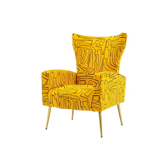 Yellow Accent Chair, leisure single chair with Rose Golden feet