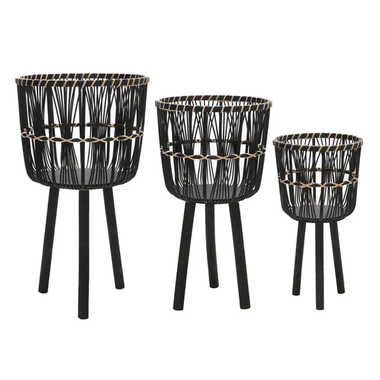 S/3 BAMBOO PLANTERS 11/13/15", BLACK