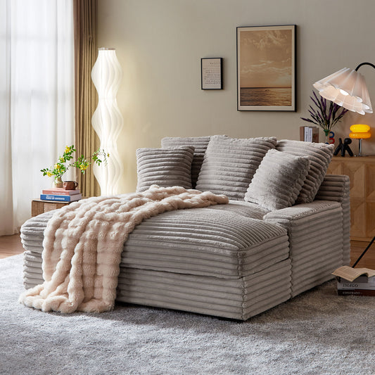 Modern Double Sleeper Sofa Comfortable Cloud Couch Soft Fluffy Corduroy Upholstery with Square Armrests
