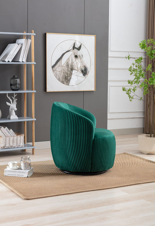 Velvet Fabric Swivel Accent Armchair Barrel Chair With Black Powder Coating Metal Ring,Green