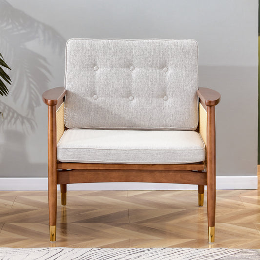 A modern minimalist walnut color rattan like solid wood sofa, equipped with a minimalist and comfortable high rebound sponge sofa cushion