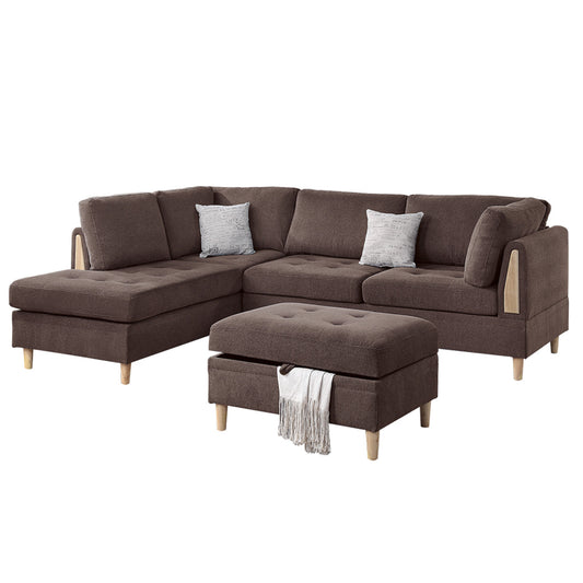 3 Piece Sectional Set with Ottoman Upholstered in Chenille Color Chocolate