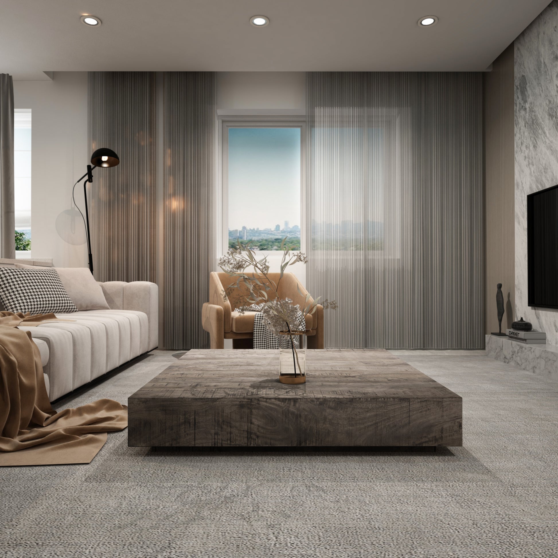 Charcoal Finish Solid Wood Low Profile Rough Coffee Table